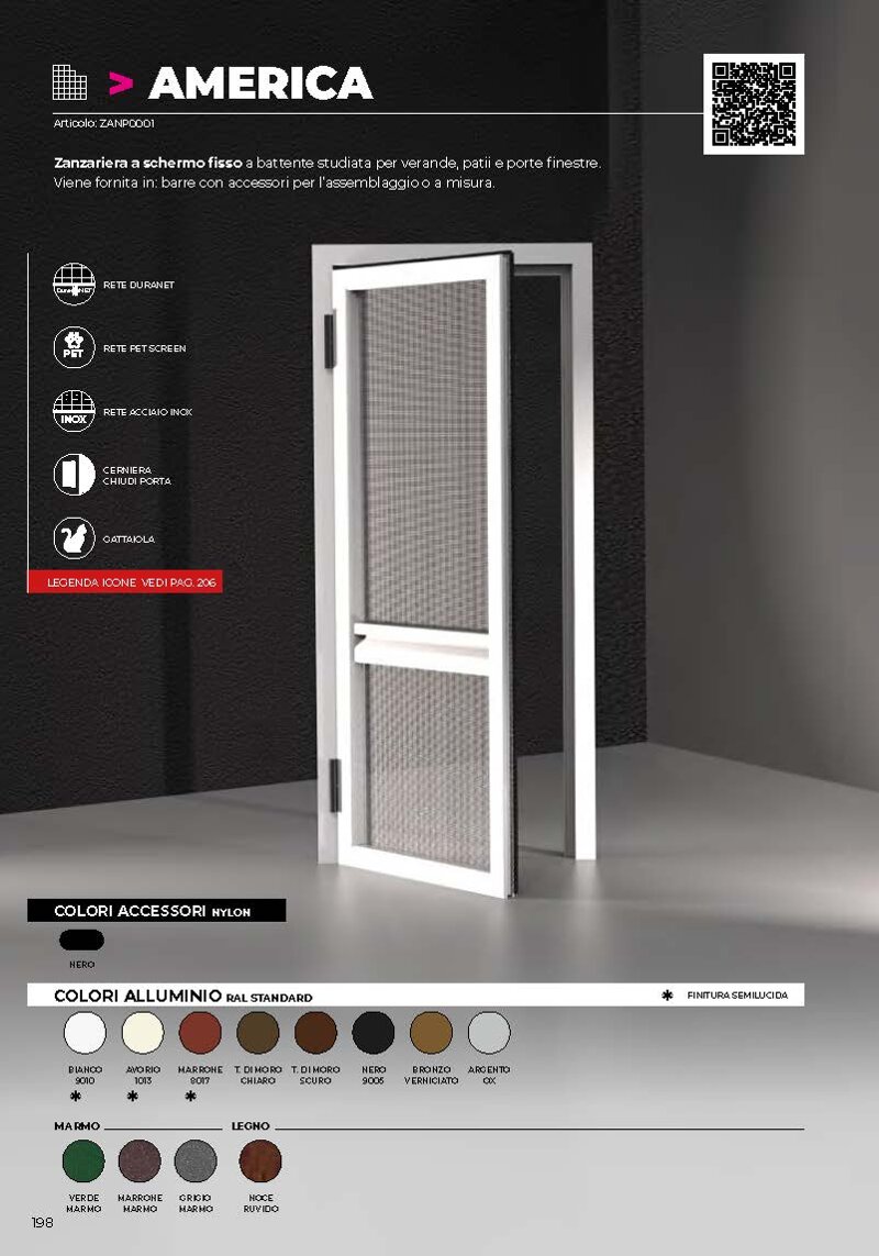 Zanzariera a battente, ideale per porte di ingresso, verande, patii e porte-finestre. Due tipi di telaio disponibili, per posa in battuta o in luce. Accessori disponibili: - cerniere chiudi-porta - rete in acciaio inox